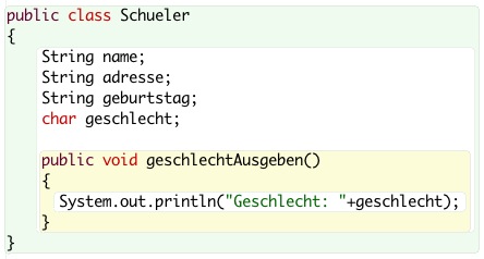 Nun anders herum! Übertrage den abgebildeten Java-Code in eine Klassenkarte (mit Papier und Bleistift!)