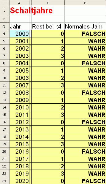 Beachte, dass die Tabelle für andere Zeiträume falsche Ergebnisse liefern kann. Näheres dazu später!