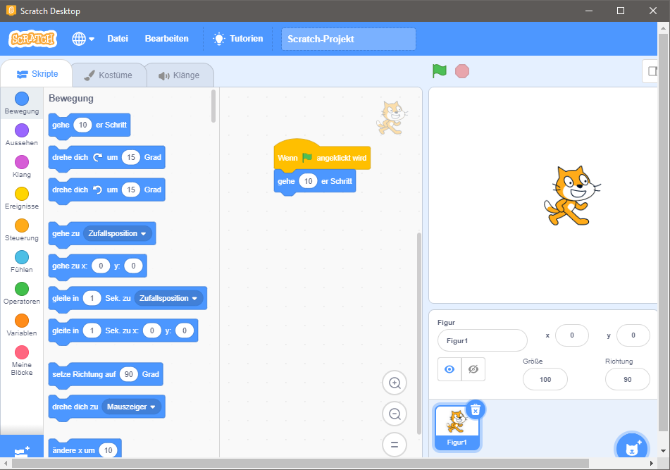 Die Programmierumgebung, welche wir in der 7. Klasse verwenden heißt Scratch.