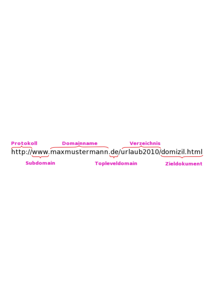 Die Domain besteht aus Domainname und Topleveldomain: die Domain gibt an, in welchem Netzwerk das Zieldokument zu finden ist.